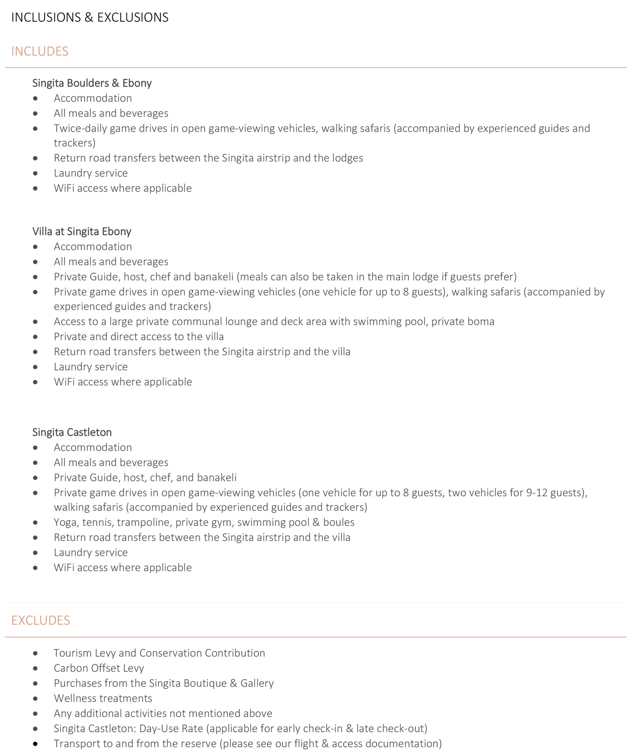 We recommend to our VIP travelers to fly into Singita Lodges for a seamless experience.