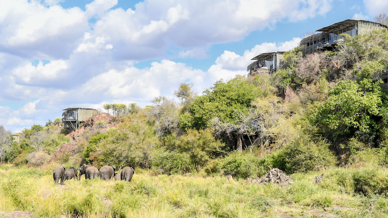 Lebombo Villa: This facility is a luxurious private villa built into the N’wanetsi riverbank, providing expansive views and a strong connection to the wilderness. The villa includes airy living areas that flow outdoors onto a large deck framed by euphorbia trees, with a main pool screened by mature trees but overlooking the bush. It offers an exclusive and immersive nature experience with a contemporary, organic design that blends into the natural surroundings. The villa accommodates up to 8 guests in two linked two-bedroom suites, each with its own private pool, creating a four-bedroom exclusive-use property with open-plan kitchen and exclusive boma.